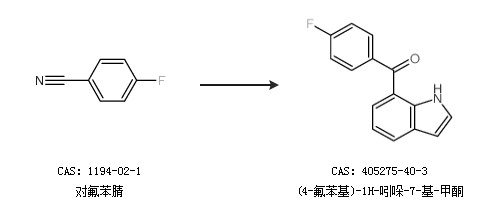 2.通过对氟苯腈合成(4-氟苯基)-1H-吲哚-7-基-甲酮
