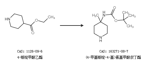 2.通过4-哌啶甲酸乙酯合成(4-甲基哌啶-4-基)氨基甲酸叔丁酯