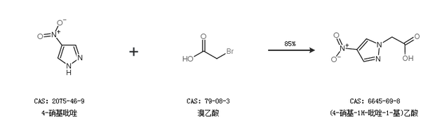 1.通过4-硝基吡唑和溴乙酸合成(4-硝基-1H-吡唑-1-基)乙酸,收率约85%;