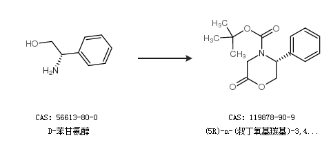2.通过D-苯甘氨醇合成(5R)-n-(叔丁氧基羰基)-3,4,5,6-四氢-5-苯基-4(h)-1,4-噁嗪-2-酮
