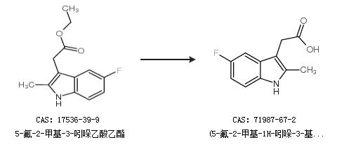 1.通过5-氟-2-甲基-3-吲哚乙酸乙酯合成(5-氟-2-甲基-1H-吲哚-3-基)乙酸