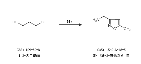 1.通过1,3-丙二硫醇合成(5-甲基-3-异恶唑)甲胺,收率约87%;