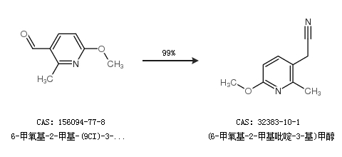 1.通过6-甲氧基-2-甲基-(9CI)-3-吡啶羧醛合成(6-甲氧基-2-甲基吡啶-3-基)甲醇,收率约99%;