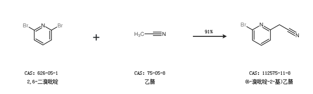 1.通过2,6-二溴吡啶和乙腈合成(6-溴吡啶-2-基)乙腈,收率约91%;