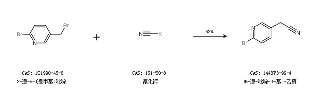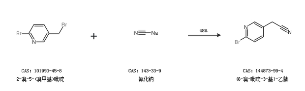 2.通过2-溴-5-(溴甲基)吡啶和氰化钠合成(6-溴-吡啶-3-基)-乙腈,收率约48%;