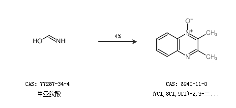 2.通过甲亚胺酸合成(7CI,8CI,9CI)-2,3-二甲基喹噁啉 1-氧化物,收率约4%;