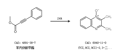 1.通过苯丙炔酸甲酯合成(7CI,8CI,9CI)-2,3-二甲基喹噁啉 1-氧化物,收率约24%;