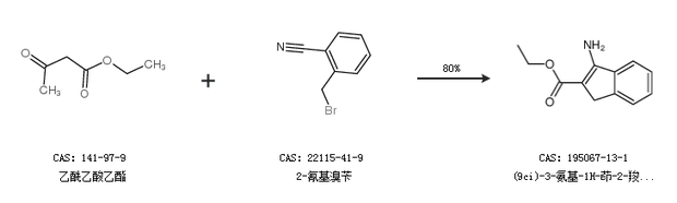 1.通过乙酰乙酸乙酯和2-氰基溴苄合成(9ci)-3-氨基-1H-茚-2-羧酸乙酯,收率约80%;