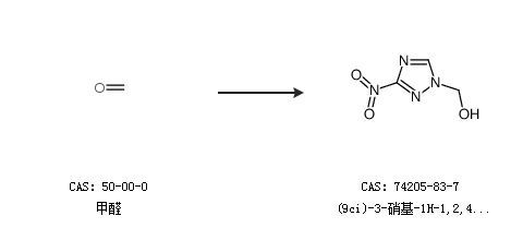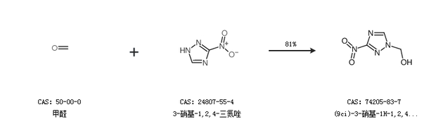 1.通过甲醛和3-硝基-1,2,4-三氮唑合成(9ci)-3-硝基-1H-1,2,4-噻唑-1-甲醇,收率约81%;