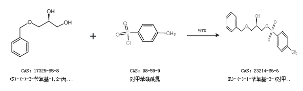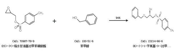 1.通过(2S)-(+)-缩水甘油基对甲苯磺酸酯和苯甲醇合成(R)-(-)-1-苄氧基-3-(对甲苯磺酰氧基)-2-丙醇,收率约94%;
