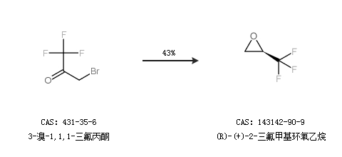 1.通过3-溴-1,1,1-三氟丙酮合成(R)-(+)-2-三氟甲基环氧乙烷,收率约43%;