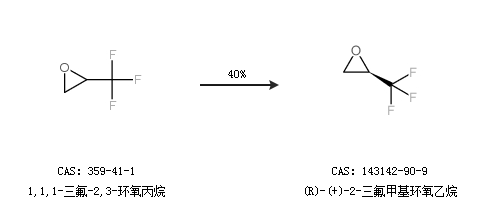 2.通过1,1,1-三氟-2,3-环氧丙烷合成(R)-(+)-2-三氟甲基环氧乙烷,收率约40%;