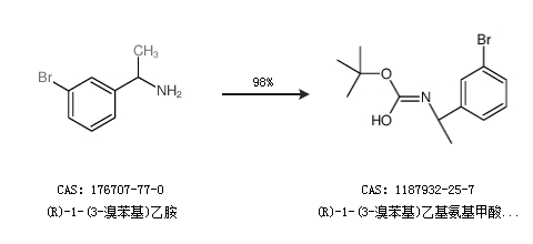 1.通过(R)-1-(3-溴苯基)乙胺合成(R)-1-(3-溴苯基)乙基氨基甲酸叔丁酯,收率约98%;