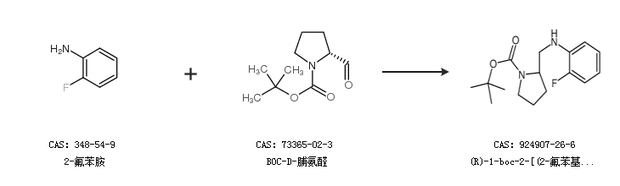 1.通过2-氟苯胺和BOC-D-脯氨醛合成(R)-1-boc-2-[(2-氟苯基氨基)-甲基]-吡咯烷