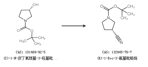 1.通过(S)-1-N-叔丁氧羰基-3-羟基吡咯烷合成(R)-1-Boc-3-氰基吡咯烷