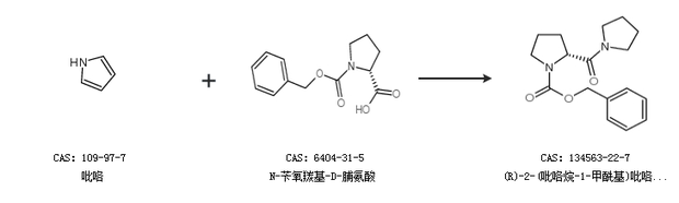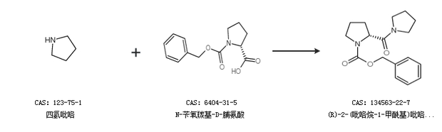 2.通过四氢吡咯和N-苄氧羰基-D-脯氨酸合成(R)-2-(吡咯烷-1-甲酰基)吡咯烷-1-甲酸苄酯
