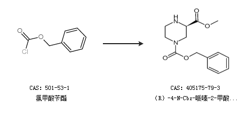 1.通过氯甲酸苄酯合成(R)-4-N-Cbz-哌嗪-2-甲酸甲酯