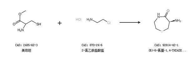 2.通过美司坦和2-氯乙胺盐酸盐合成(R)-6-氨基-1,4-THIAZEPAN-5-酮