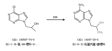 1.通过(R)-1-(6-氯-9H-嘌呤-9-基)-2-丙醇合成(R)-9-(2-羟基丙基)腺嘌呤,收率约89%;
