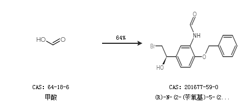 2.通过甲酸合成(R)-N-(2-(苄氧基)-5-(2-溴-1-羟基乙基)苯基)甲酰胺,收率约64%;