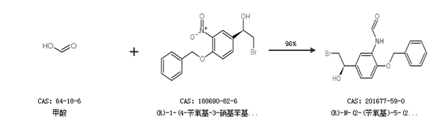 1.通过甲酸和(R)-1-(4-苄氧基-3-硝基苯基)-2-溴乙醇合成(R)-N-(2-(苄氧基)-5-(2-溴-1-羟基乙基)苯基)甲酰胺,收率约96%;