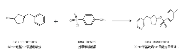 1.通过(S)-3-羟基-1-苄基吡咯烷和对甲苯磺酰氯合成(R)-N-苄基吡咯-3-甲醇对甲苯磺酸酯