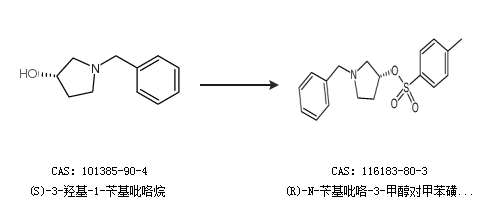 2.通过(S)-3-羟基-1-苄基吡咯烷合成(R)-N-苄基吡咯-3-甲醇对甲苯磺酸酯
