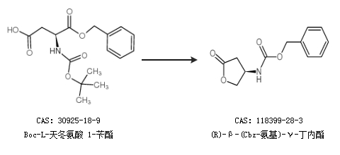 2.通过Boc-L-天冬氨酸 1-苄酯合成(R)-β-(Cbz-氨基)-γ-丁内酯