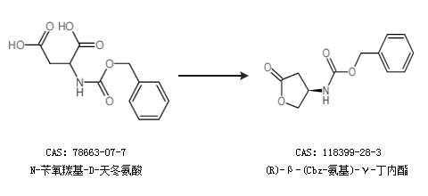 1.通过N-苄氧羰基-D-天冬氨酸合成(R)-β-(Cbz-氨基)-γ-丁内酯