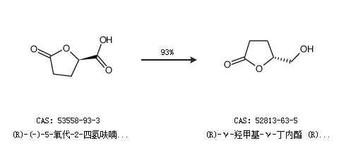 2.通过(R)-(-)-5-氧代-2-四氢呋喃羧酸合成(R)-γ-羟甲基-γ-丁内酯 (R)-4,5-二氢-5-羟甲基-2(3H)-呋喃酮 (R)-5-羟甲基-2-氧代四氢呋喃,收率约93%;