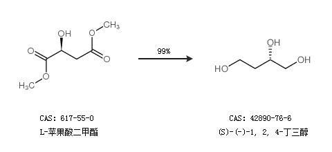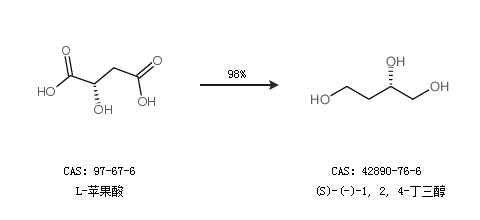 1.通过L-苹果酸合成(S)-(-)-1, 2, 4-丁三醇,收率约98%;
