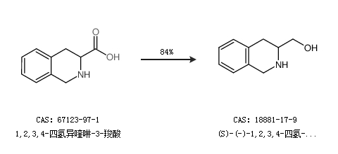 1.通过1,2,3,4-四氢异喹啉-3-羧酸合成(S)-(-)-1,2,3,4-四氢-3-异喹啉甲醇,收率约84%;
