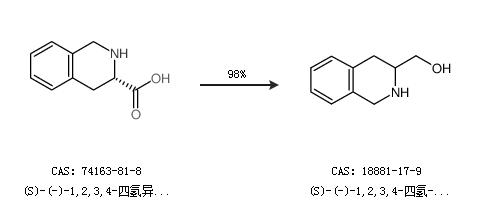 2.通过(S)-(-)-1,2,3,4-四氢异喹啉-3-羧酸合成(S)-(-)-1,2,3,4-四氢-3-异喹啉甲醇,收率约98%;