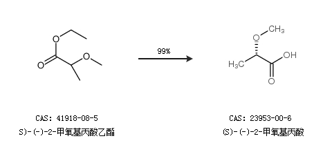 1.通过S)-(-)-2-甲氧基丙酸乙酯合成(S)-(-)-2-甲氧基丙酸,收率约99%;