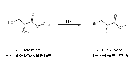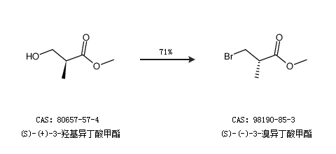 1.通过(-)-甲基-D-BATA-羟基异丁酸酯合成(S)-(-)-3-溴异丁酸甲酯,收率约83%;