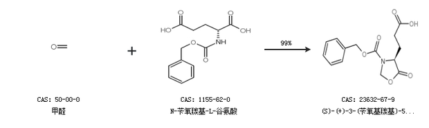 1.通过甲醛和N-苄氧羰基-L-谷氨酸合成(S)-(+)-3-(苄氧基羰基)-5-氧代-4-噁唑啉丙酸,收率约99%;