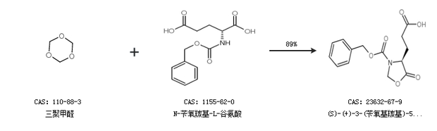 2.通过三聚甲醛和N-苄氧羰基-L-谷氨酸合成(S)-(+)-3-(苄氧基羰基)-5-氧代-4-噁唑啉丙酸,收率约89%;