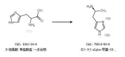 1.通过D-组氨酸 单盐酸盐 一水合物合成(S)-(+)-alpha-甲基-1H-咪唑-4-乙胺二氢溴酸
