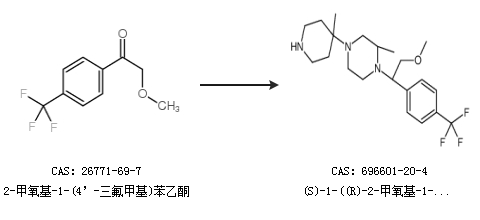 2.通过2-甲氧基-1-(4’-三氟甲基)苯乙酮合成(S)-1-((R)-2-甲氧基-1-(4-(三氟甲基)苯基)乙基)-2-甲基-4-(4-甲基哌啶-4-基)哌嗪