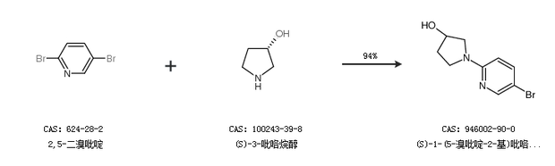1.通过2,5-二溴吡啶和(S)-3-吡咯烷醇合成(S)-1-(5-溴吡啶-2-基)吡咯烷-3-醇,收率约94%;