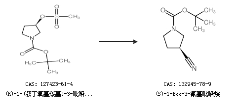 1.通过(R)-1-(叔丁氧基羰基)-3-吡咯烷-甲磺酸酯合成(S)-1-Boc-3-氰基吡咯烷