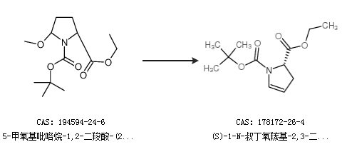 2.通过5-甲氧基吡咯烷-1,2-二羧酸-(2S)-1-叔丁基-2-乙酯合成(S)-1-N-叔丁氧羰基-2,3-二氢-2-吡咯甲酸乙酯
