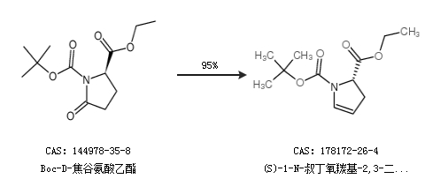 1.通过Boc-D-焦谷氨酸乙酯合成(S)-1-N-叔丁氧羰基-2,3-二氢-2-吡咯甲酸乙酯,收率约95%;