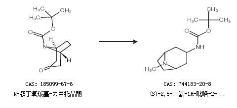 2.通过N-叔丁氧羰基-去甲托品酮合成(S)-2,5-二氢-1H-吡咯-2-羧酸