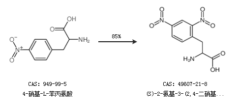 1.通过4-硝基-L-苯丙氨酸合成(S)-2-氨基-3-(2,4-二硝基苯基)丙酸,收率约85%;