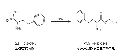 2.通过DL-高苯丙氨酸合成(S)-2-氨基-4-苯基丁酸乙酯,收率约82%;