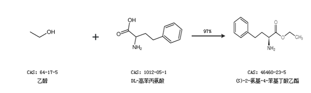 1.通过乙醇和DL-高苯丙氨酸合成(S)-2-氨基-4-苯基丁酸乙酯,收率约97%;