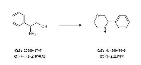 2.通过(S)-(+)-2-苯甘氨醇合成(S)-3-苯基吗啉