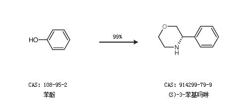 1.通过苯酚合成(S)-3-苯基吗啉,收率约99%;