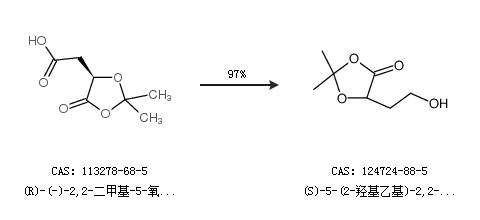 英文别名 (5S)-5-(2''-hydroxyethyl)-2,2-dimethyl-[1,3]dioxolan-4-one;(S)-5-(2-hydroxyethyl)-2,2-dimethyl-[1,3]dioxolan-4-one;(S)-(+)-2,2-dimethyl-5-oxo-1,3-dioxolane-4-ethanol;